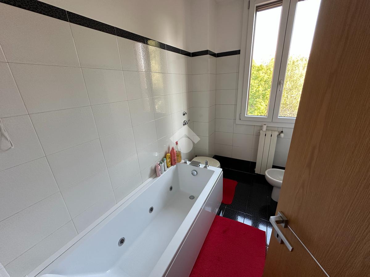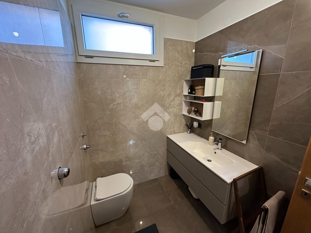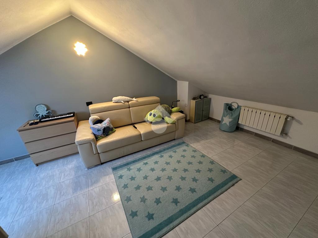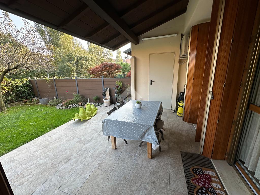 Inoltre l'unità è stata totalmente ristrutturata nel 2019 nei rivestimenti e negli impianti dotata di: paviemnto in gress porcellanato, giardino privato, porta blindata, riscaldamento autonomo, infissi in pvc (doppio vetro con camera d'aria), persiane, zanzariere, caldaia ibrida del 2022, aria condizionata, pavimentazione in parquet rovere zona notte, citofono video, pannelli fotovoltaici con batterie di accumulo, colonnina per auto elettrica ed esposizione Est-Ovest.