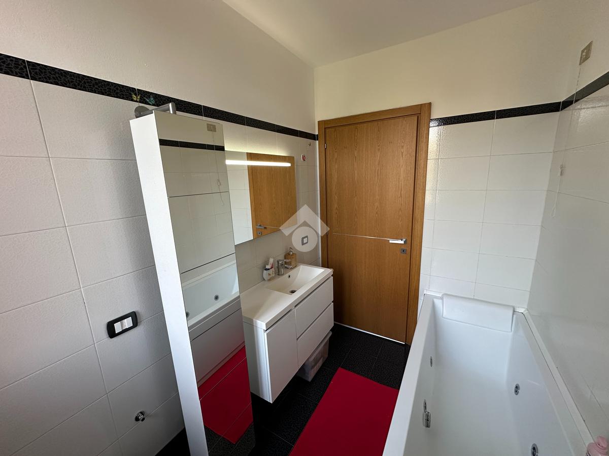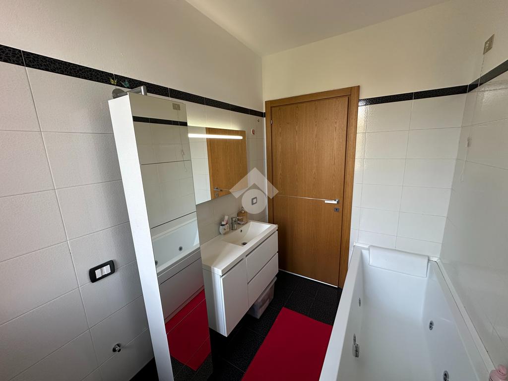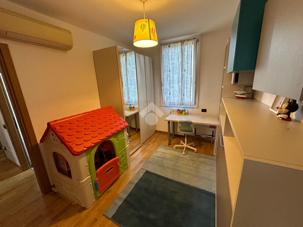 Inoltre l'unità è stata totalmente ristrutturata nel 2019 nei rivestimenti e negli impianti dotata di: paviemnto in gress porcellanato, giardino privato, porta blindata, riscaldamento autonomo, infissi in pvc (doppio vetro con camera d'aria), persiane, zanzariere, caldaia ibrida del 2022, aria condizionata, pavimentazione in parquet rovere zona notte, citofono video, pannelli fotovoltaici con batterie di accumulo, colonnina per auto elettrica ed esposizione Est-Ovest.
