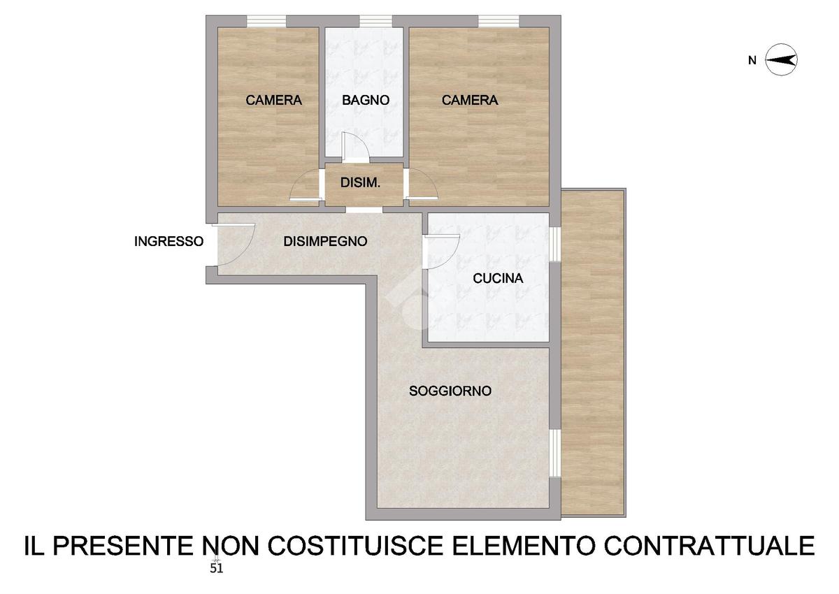 Appartamento di tre locali, servizio e accessori sito al terzo piano di quattro, sviluppato su una superficie complessiva di circa 90 mq, articolato come segue: Ingresso in disimpegno attrezzabile, soggiorno (con accesso al balcone), cucina abitabile (con accesso al balcone), disimpegno zona notte, camera matrimoniale, camera singola e servizio finestrato (dotato di box doccia).