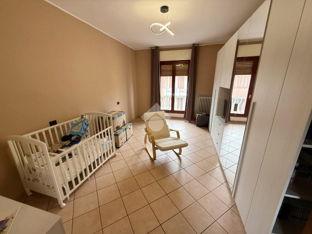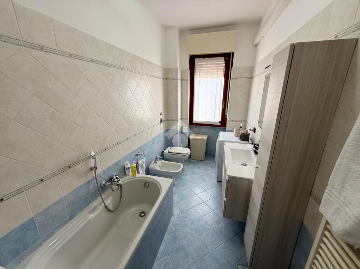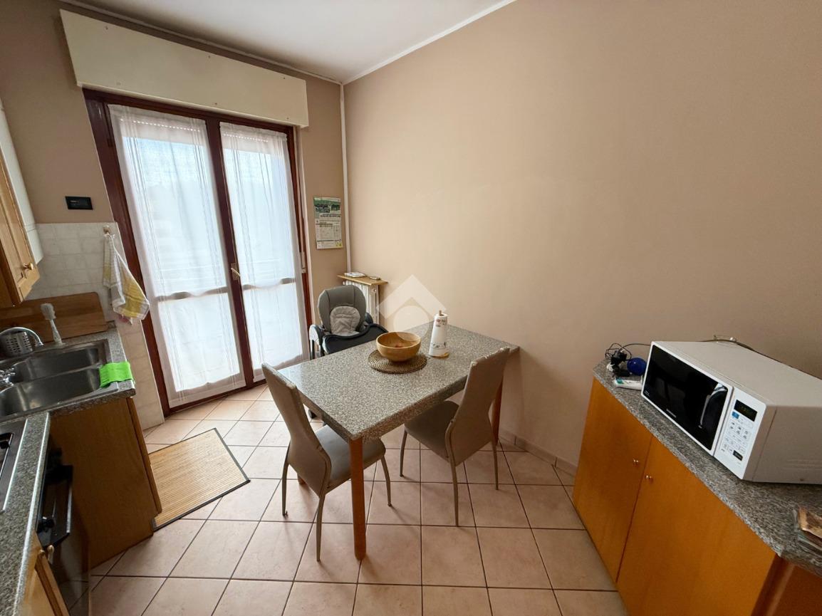 Ingresso in disimpegno attrezzabile, soggiorno, cucina abitabile (con accesso al balcone), disimpegno zona notte, camera matrimoniale, servizio finestrato (dotato di vasca), camera singole e ripostiglio.