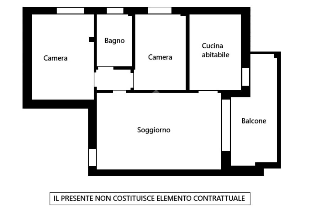 Ingresso, soggiorno con accesso al terrazzo, cucina abitabile (accesso al terrazzo). La zona notte è composta da: disimpegno, servizio finestrato (dotato di doccia), ampia camera matrimoniale e seconda camera.