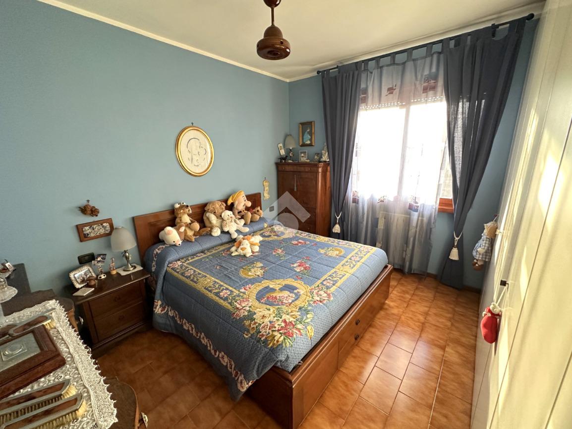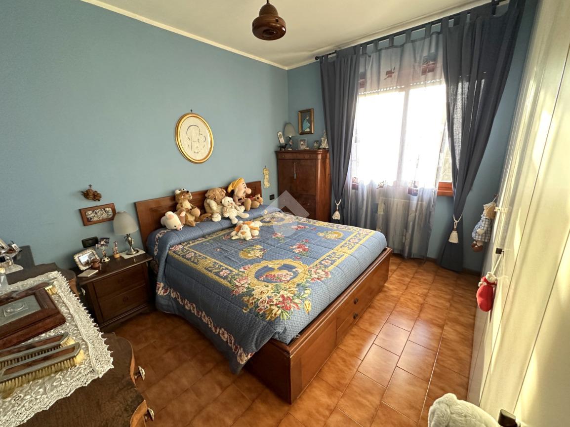Ingresso in soggiorno con accesso al balcone, cucina abitabile, disimpegno, camera matrimoniale e servizio padronale (finestrato e dotato di vasca), camera singola.