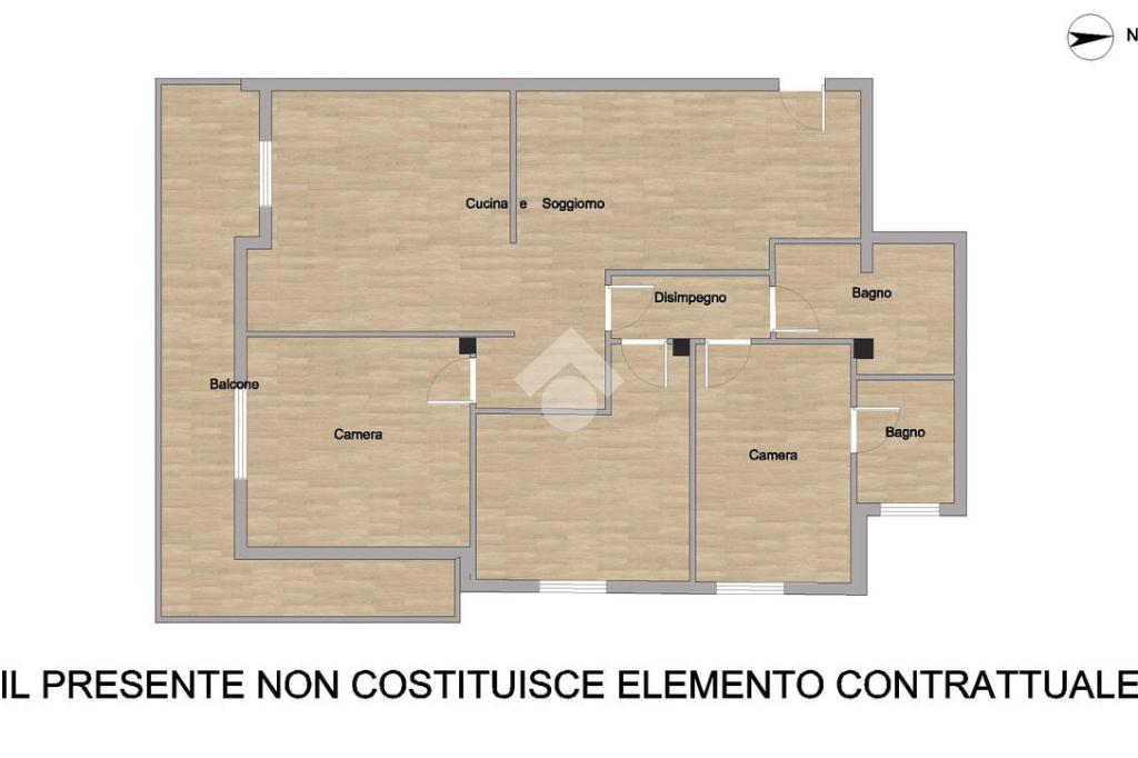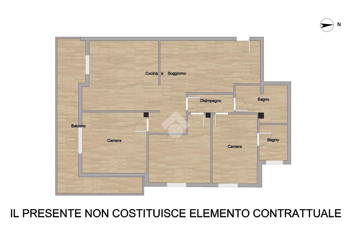 Ingresso in zona living suddivisa da: soggiorno con cucina open space (accesso al balcone) e armadiatura a muro destinato ad uso guardaroba. Nella zona notte troviamo una camera da letto con servizio privato (dotato di doccia), due camere da letto e secondo servizio(dotato di vasca).