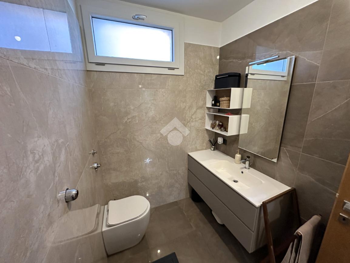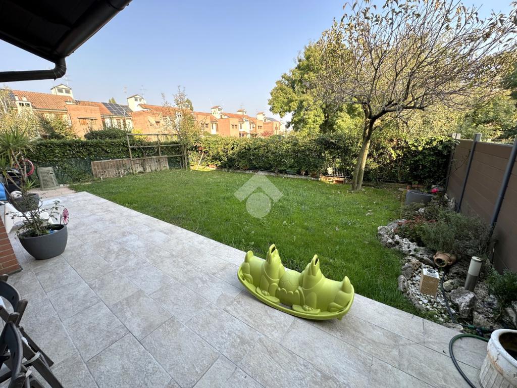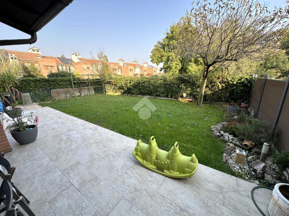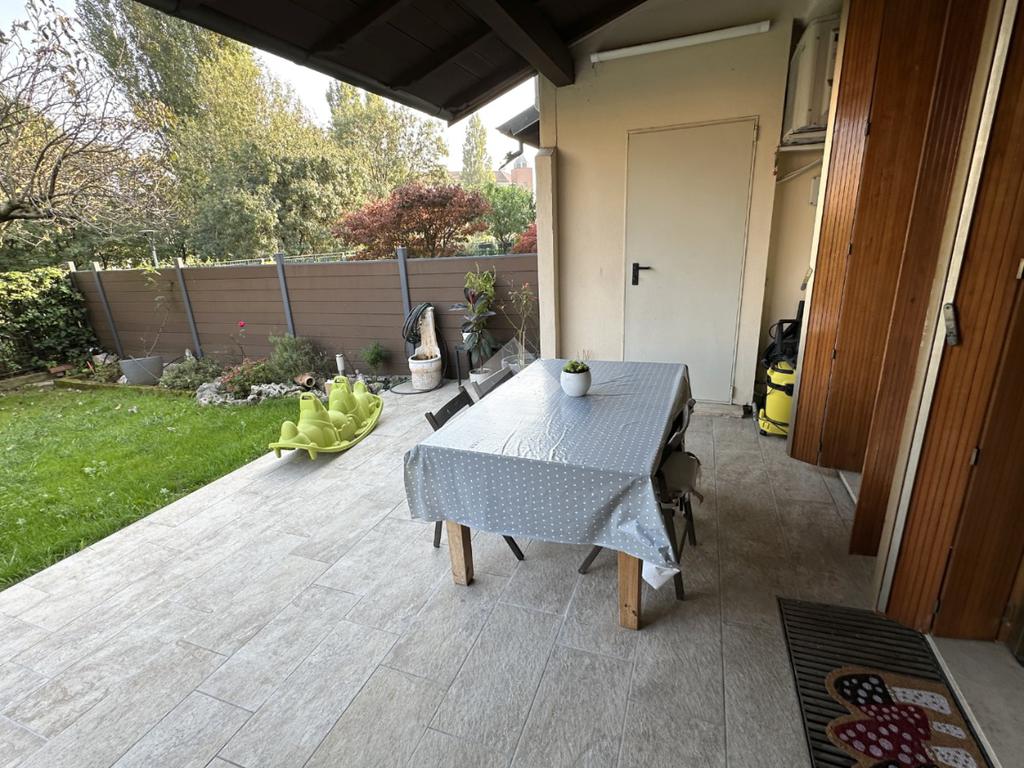 Inoltre l'unità è stata totalmente ristrutturata nel 2019 nei rivestimenti e negli impianti dotata di: paviemnto in gress porcellanato, giardino privato, porta blindata, riscaldamento autonomo, infissi in pvc (doppio vetro con camera d'aria), persiane, zanzariere, caldaia ibrida del 2022, aria condizionata, pavimentazione in parquet rovere zona notte, citofono video, pannelli fotovoltaici con batterie di accumulo, colonnina per auto elettrica ed esposizione Est-Ovest.
