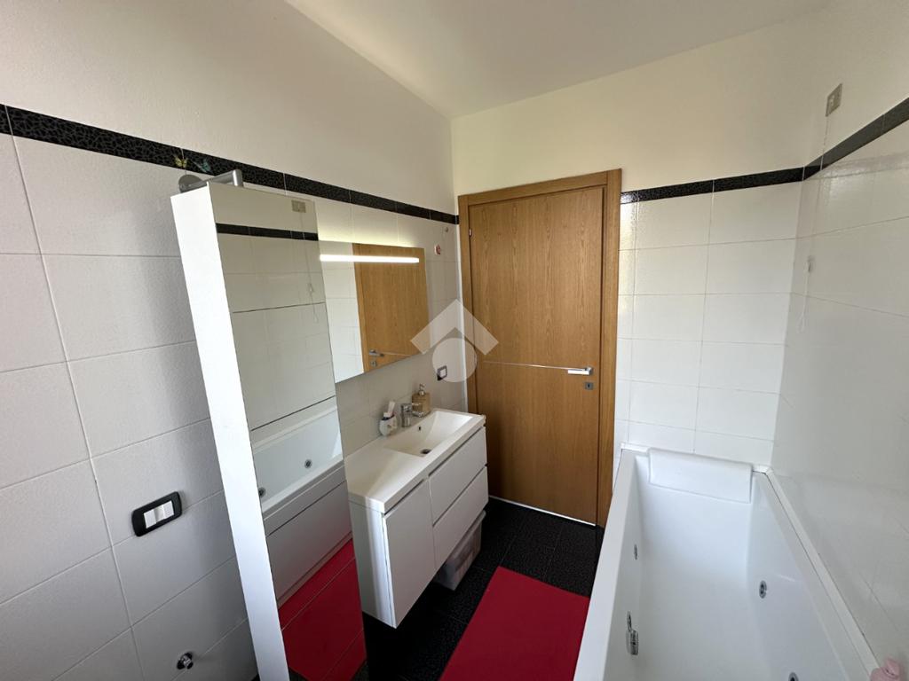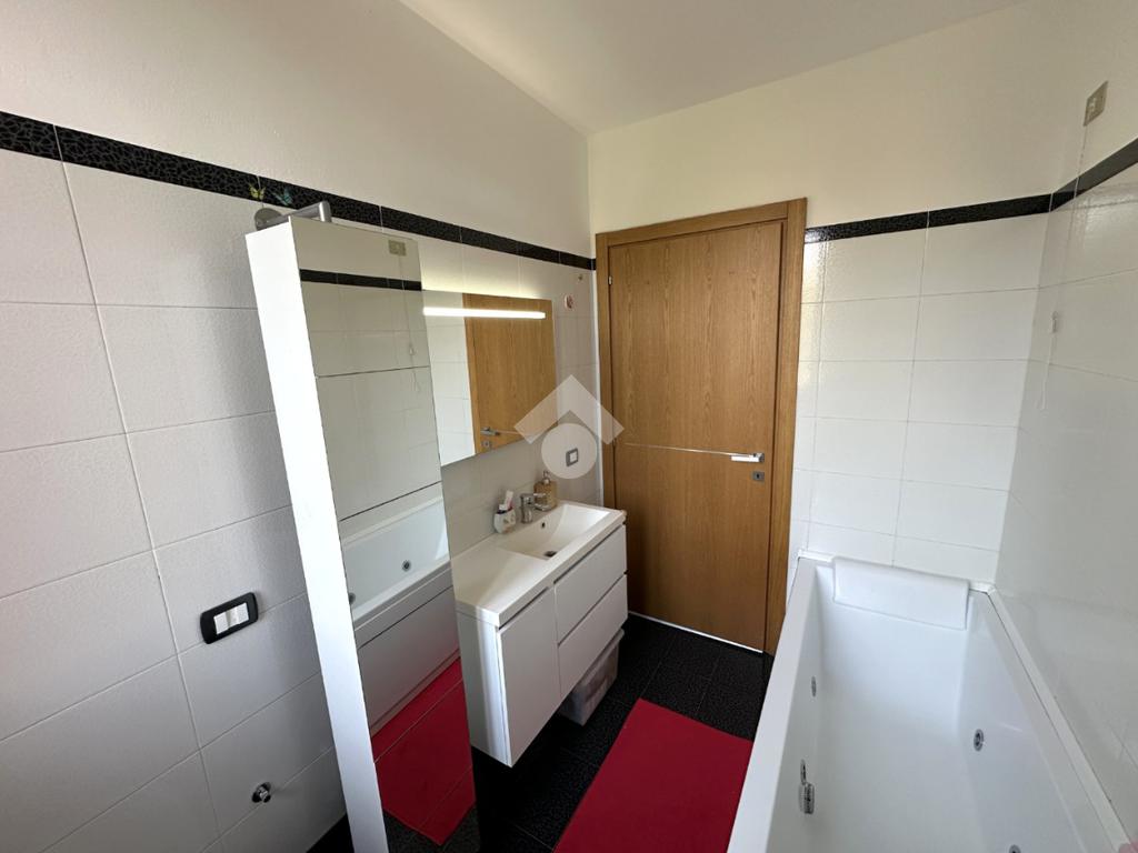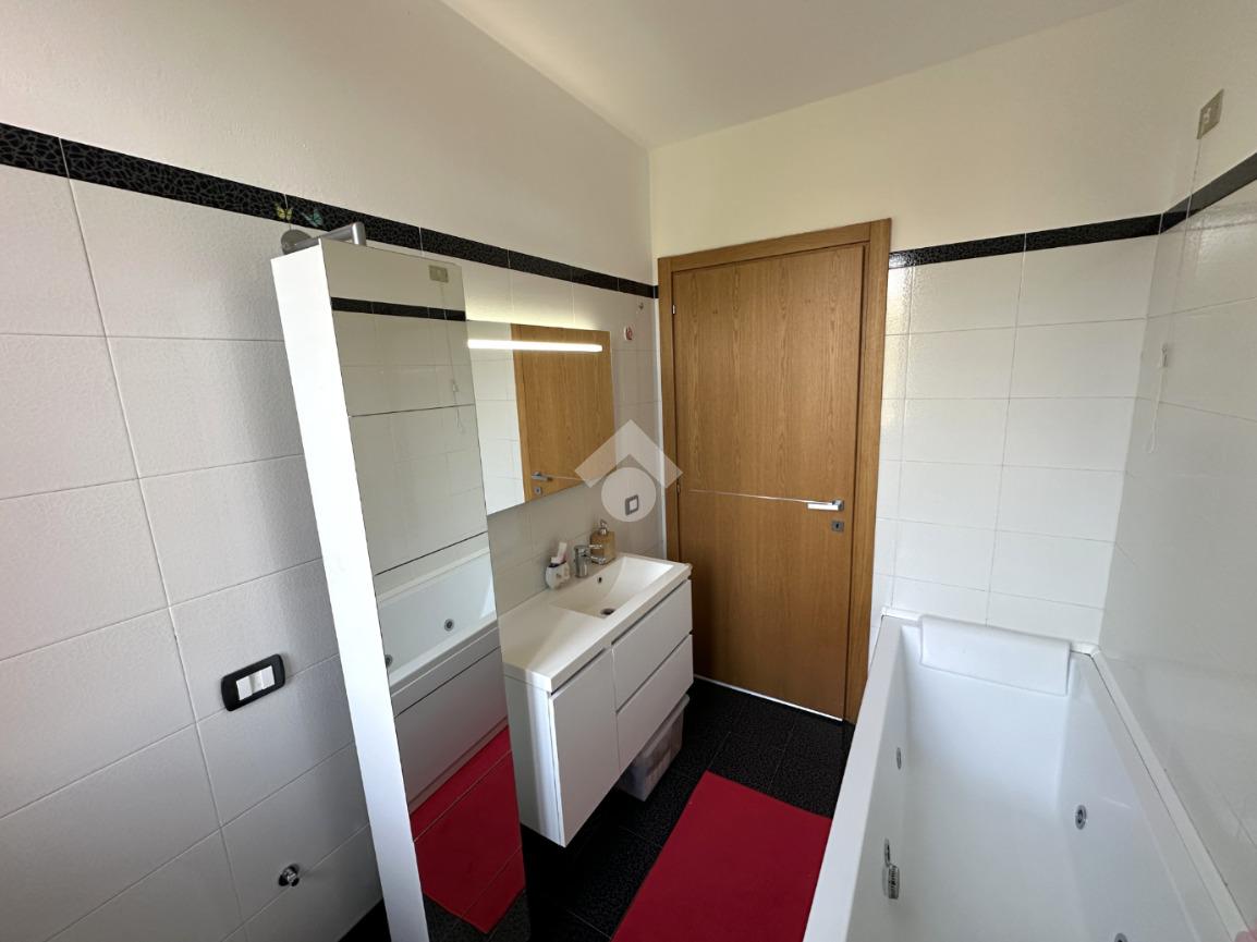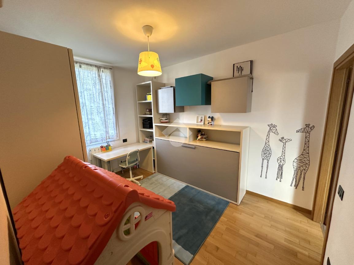 Inoltre l'unità è stata totalmente ristrutturata nel 2019 nei rivestimenti e negli impianti dotata di: paviemnto in gress porcellanato, giardino privato, porta blindata, riscaldamento autonomo, infissi in pvc (doppio vetro con camera d'aria), persiane, zanzariere, caldaia ibrida del 2022, aria condizionata, pavimentazione in parquet rovere zona notte, citofono video, pannelli fotovoltaici con batterie di accumulo, colonnina per auto elettrica ed esposizione Est-Ovest.