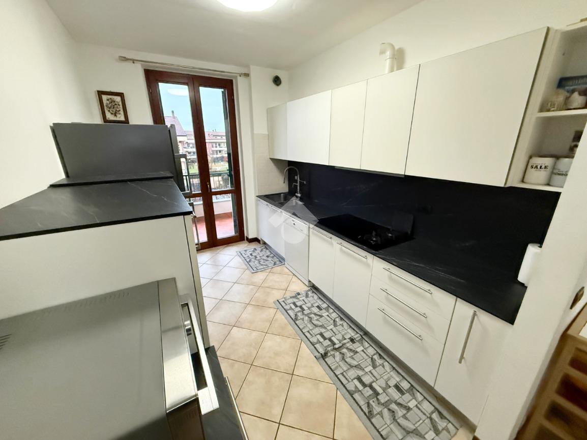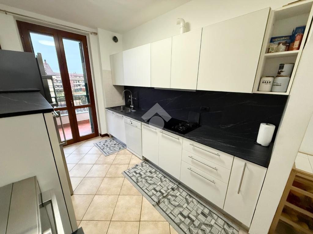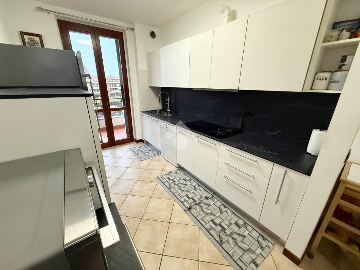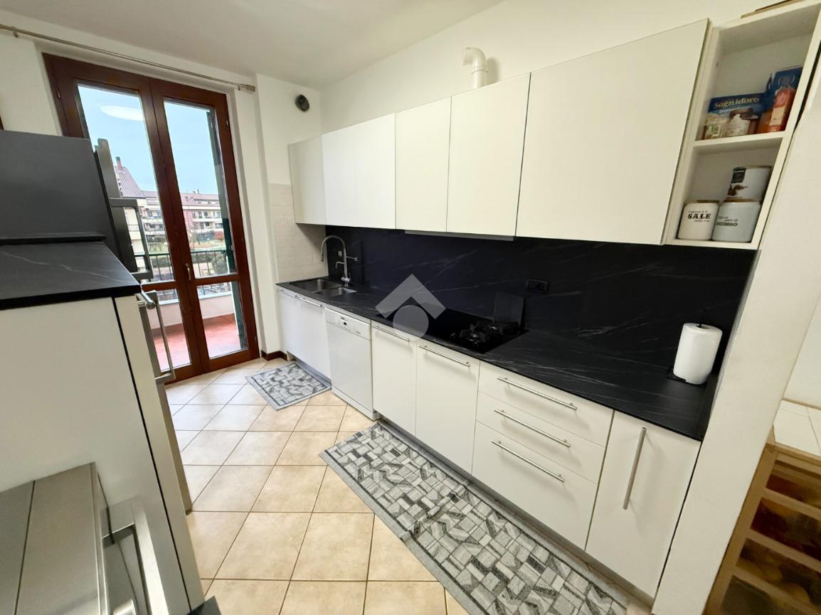 Ingresso in zona living composta da soggiorno con cucina open space (oltre accesso al balcone e al terrazzo privato). Zona notte formata da: disimpegno attrezzabile, camera matrimoniale con servizio privato finestrato dotato di doccia, camera singola, servizio finestrato (dotato di vasca) e ripostiglio.
